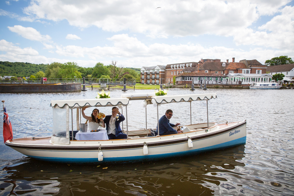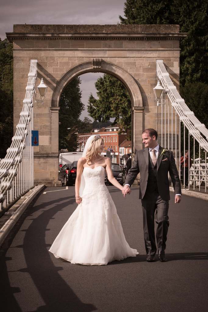 The river & bridge always seems to play an important part in a Compleat Angler wedding. I try to do some stylish bride & groom shots as they walk across the bridge. This is when I employ the skills of the Best Man or bridesmaids, Ushers & my assistant to stop traffic. The guys at Alex & Steph’s wedding did a sterling job & everyone smiled & waved as they drove past!