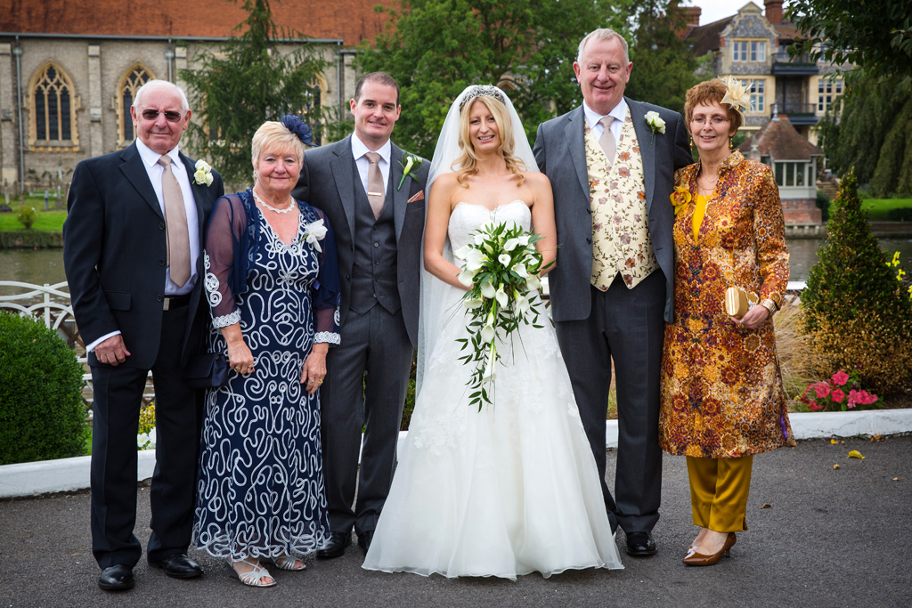 It was now time for the group shot of everyone at the wedding testing my physical fitness as in my time I have climbed a church tower & hung out of many a window to capture the shot. At The Compleat Angler, with weather permitting, I gather the guests on the lawn by the river & make a quick dash around & up onto the bridge to get the shot from a vantage point.