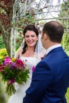 Helen & Louis’ day was a wonderful family affair with lots of stylish design ideas. I thought the bride looked beautiful in her fur stole & pheasant feather headpiece that she made herself. The use of gypsophila en masse in the bouquet & cake topper was stunning. So interesting to use these delicate little flowers so often used as incidental filler on its own & it looked beautiful – like floral clouds!